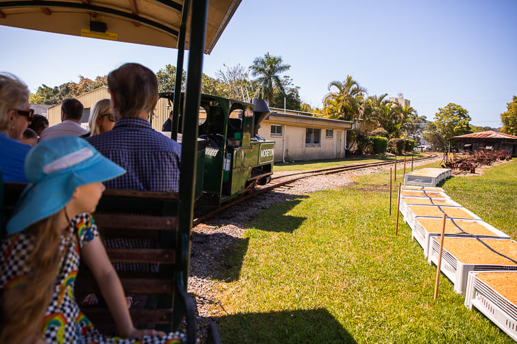 The train is over 100 years old and used to work as a sugar cane train, taking cane to the old Nambour sugar mill. It features open-sided carriages. There is only one station so prams and strollers can be left on the platform to return to after the ride.