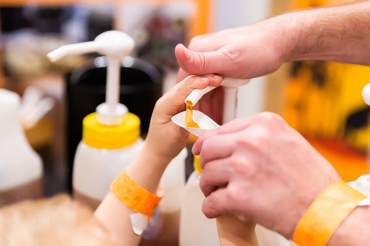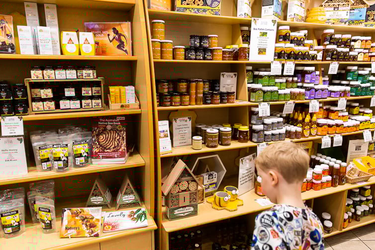 The bees are free to come and go through the open side of the building and are always separated from visitors by either screens or glass. Finally, the bee keeper leads the group into the gift shop to taste different varieties of honey and other honey products, as well as answering any bee or honey-related questions guests might have.
