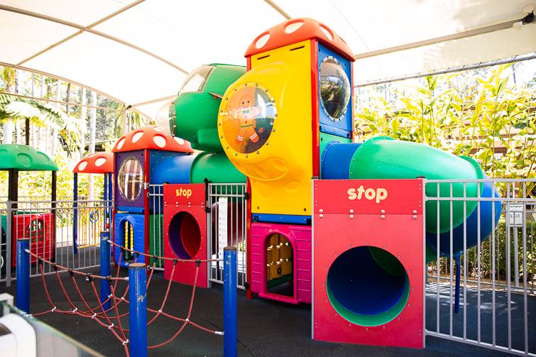 Parents will appreciate the large, fenced, covered playground that adjoins the café seating area. The playground has a toddler section on one side and a more challenging playground, suitable for pre-schoolers and primary school-aged children, on the other side.