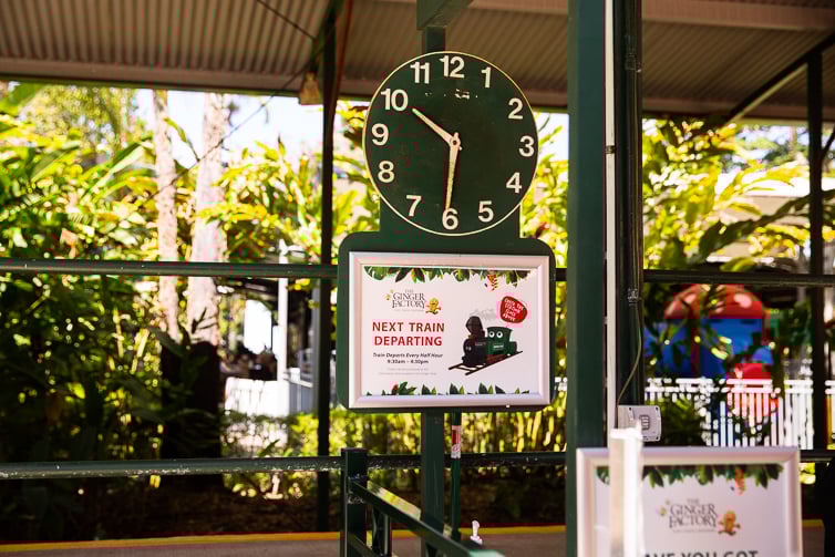 You are welcome to walk through the gardens for free, admiring the tropical and ornamental ginger-themed plants along the way, or you can purchase a ticket to ride the 100-year-old cane train, Moreton. The train leaves the “Ginger Town Station” every half hour between 9.30am and 4.30pm.