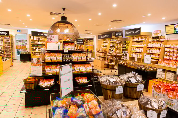 The food court is fresh and spacious, offering a café selling light meals and refreshments, and an ice creamery selling ice-cream, parfaits and ginger bread men. There are a host of flavours – several of which feature ginger in the ingredients and plenty of other options. The selection of dairy-free and vegan options was impressive.